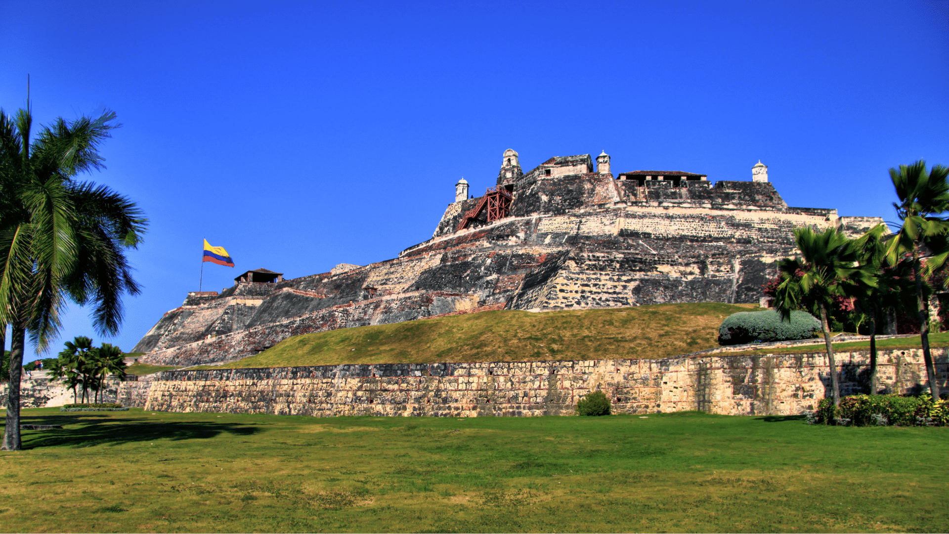 A massive fortress in Cartagena built by the Spanish to protect the city from invasions. It shows the military side of colonial architecture.
