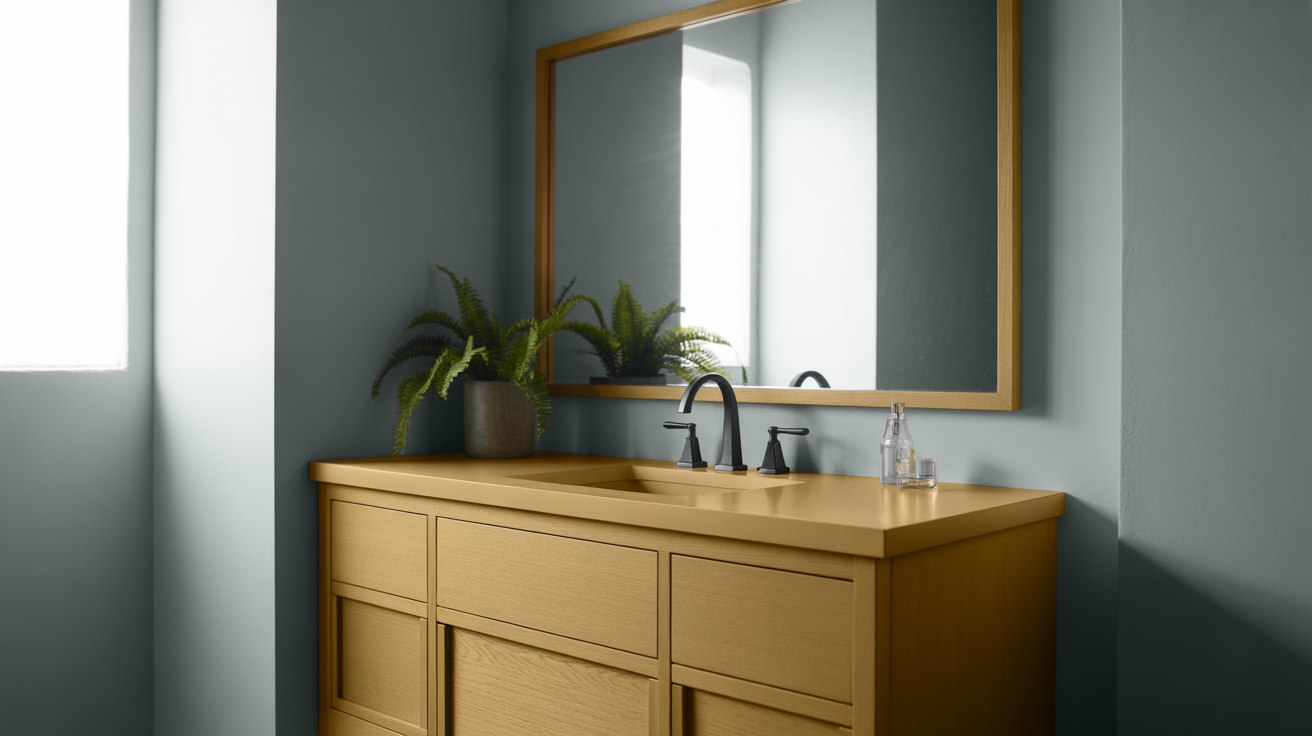 Maritime White, Collingwood, and Comfort Gray give bathrooms a soft, clean backdrop. These shades balance oak vanities without making the space feel too warm or outdated. SW 6205 Comfort Gray will be the best colour option.