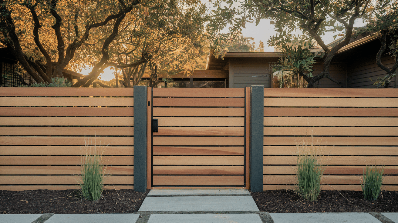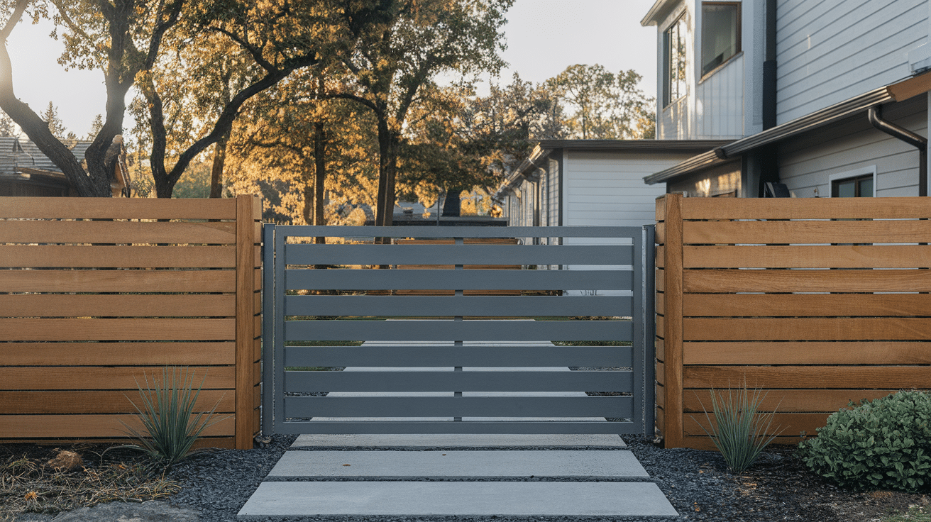 Horizontal fence gates offer a clean, modern look that fits well with today’s house styles.