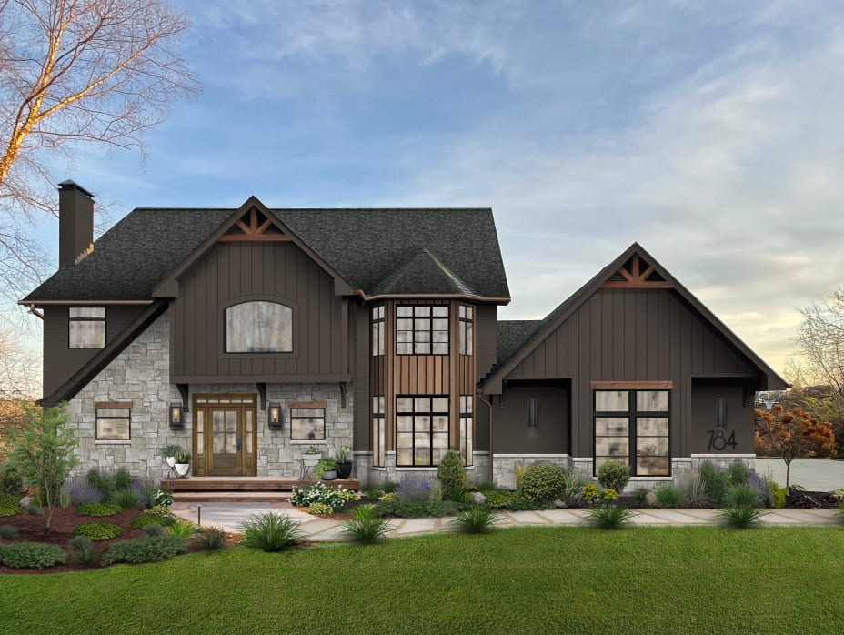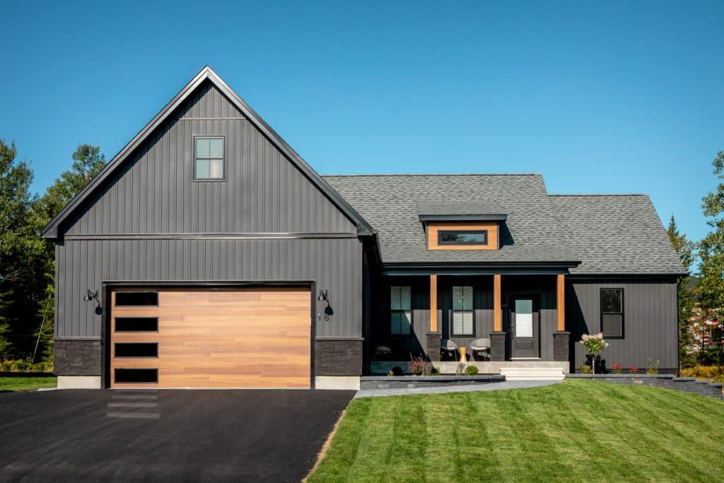 Some houses with clean lines just scream to get a contemporary redo and can look magnificent with a dark exterior on a tan roof and walls bringing in the contrast. Some detailing really brings strength to the house design. Big windows and glass-paneled doors headed with lights on the top bring in different accents and transform the modern house into a classic look.