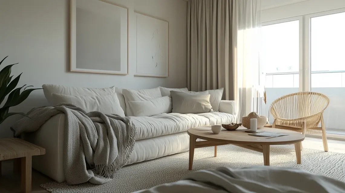 This makes your space feel light and open. Neutral colors are easy to work with, and you can add small touches like wooden tables or houseplants to keep it from looking plain.