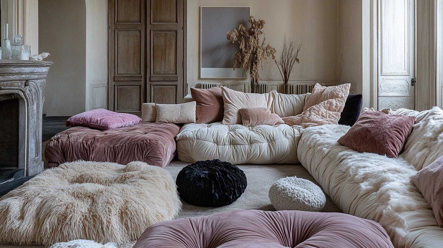 Pick soft materials like velvet, chenille, or thick cotton for your couches and chairs. Add large pillows and warm blankets. These soft things invite people to sit and relax.