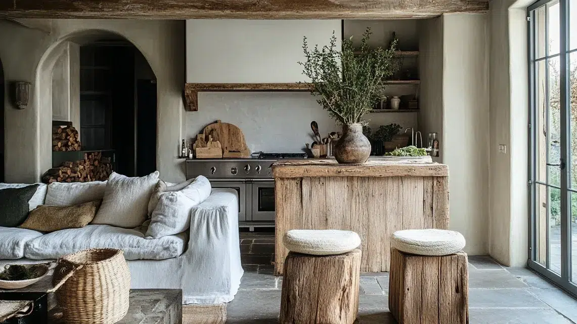 Add small furniture made from reused wood, like stools, side tables, or wall shelves. These items bring a natural, aged look.