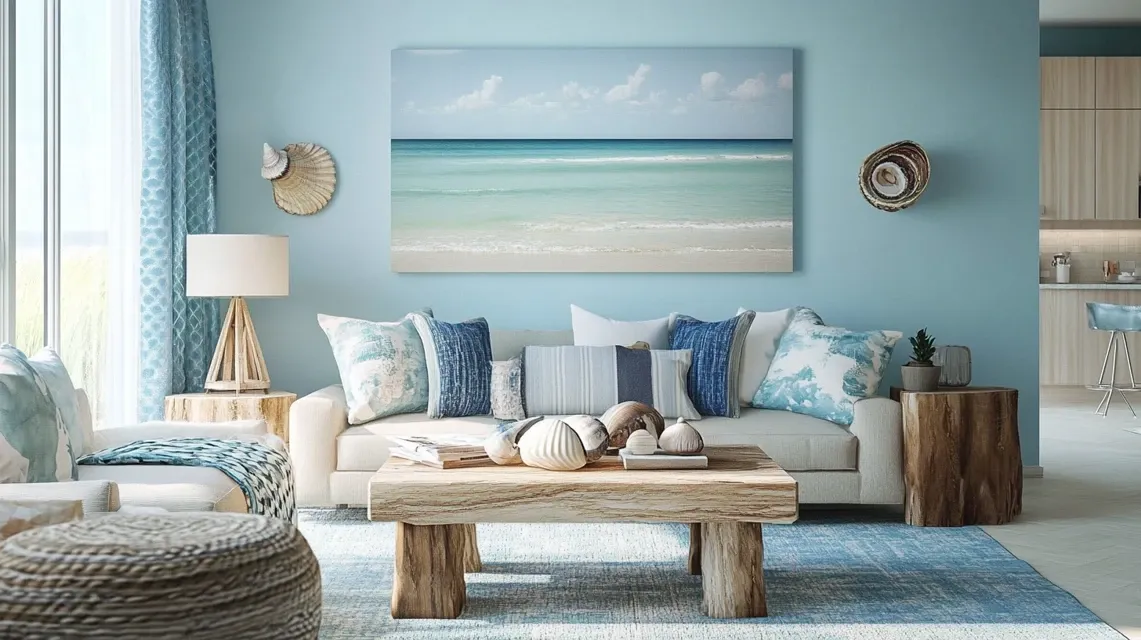 Use simple furniture and fabrics that feel fresh and clean. Add a few glass vases or rope baskets. This setup brings in the feeling of being near the sea, even if you live far from the coast.