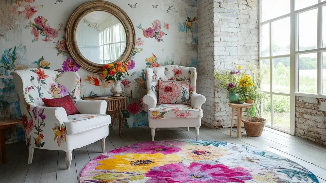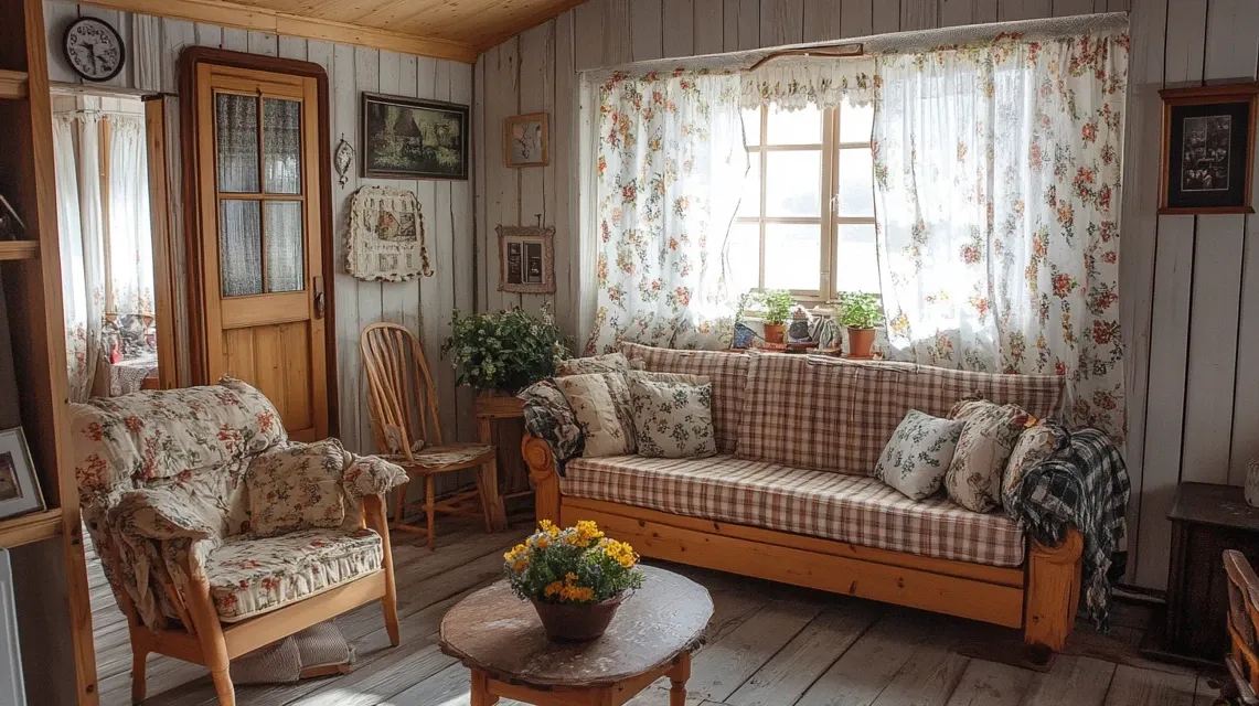 Pick prints like small flowers, checks, or simple stripes. Use them on curtains, cushions, or tablecloths. Match with wooden furniture and small decor like old clocks or photo frames.
