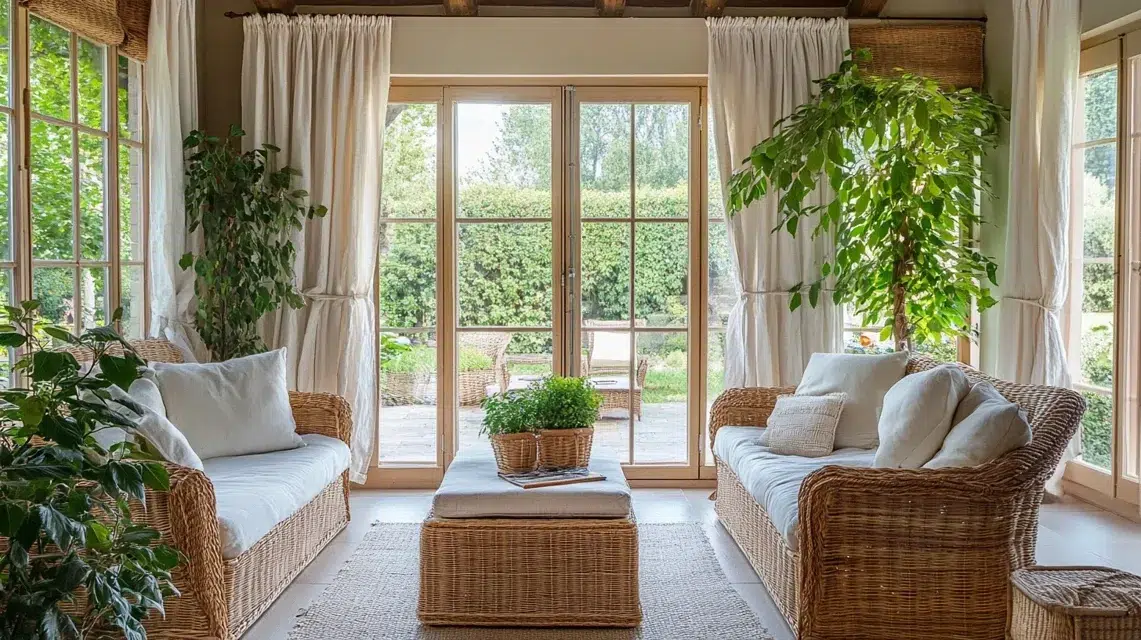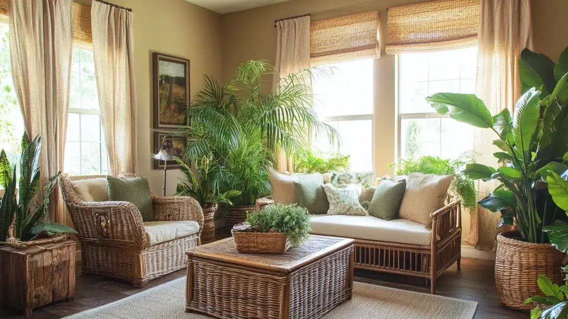 Turn your living room into a sunny spot. Use large glass windows or doors to let in light. Place wicker or light wood furniture with soft cushions.