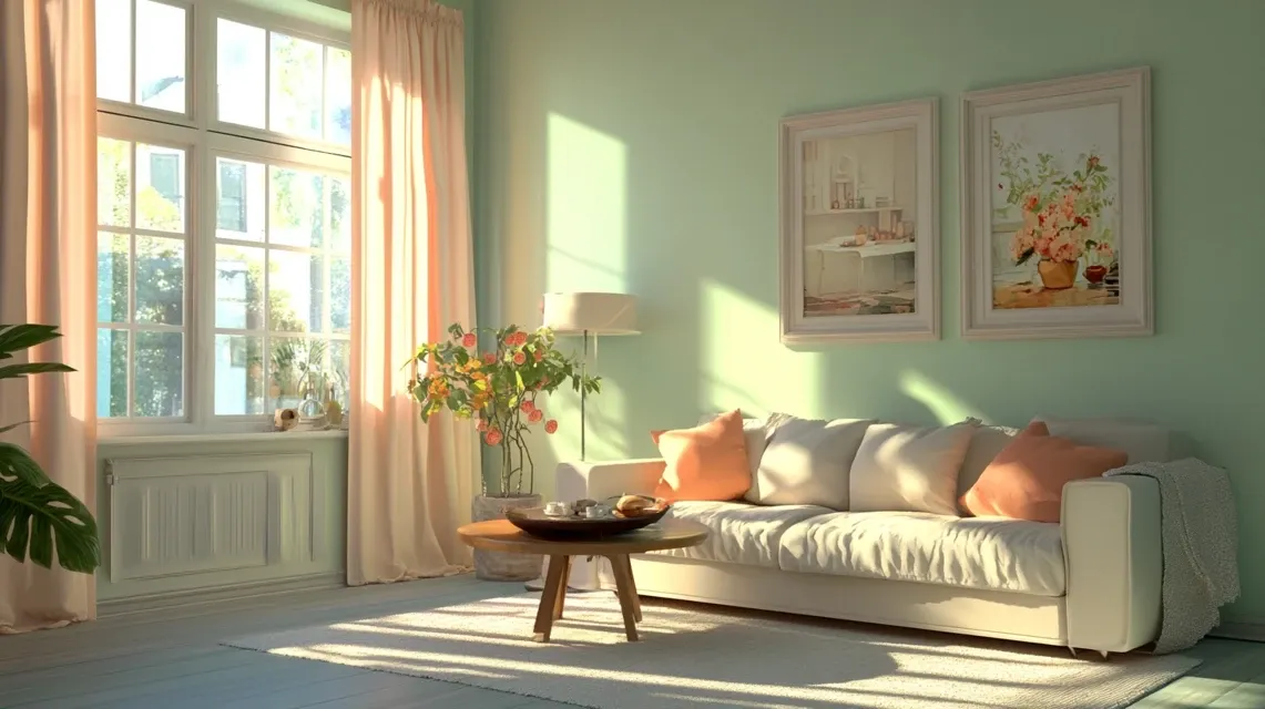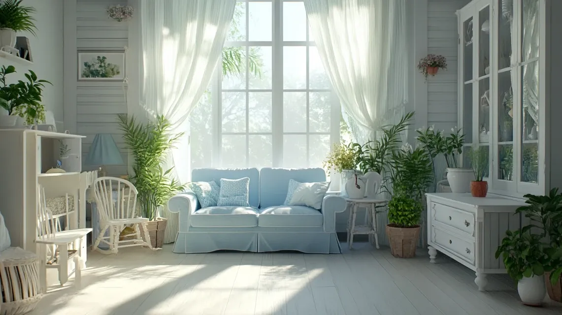 Place a real flower vase on the coffee table. It should feel like you just brought the garden inside. Add simple furniture and natural materials like wood or cotton to keep the space grounded and gentle.