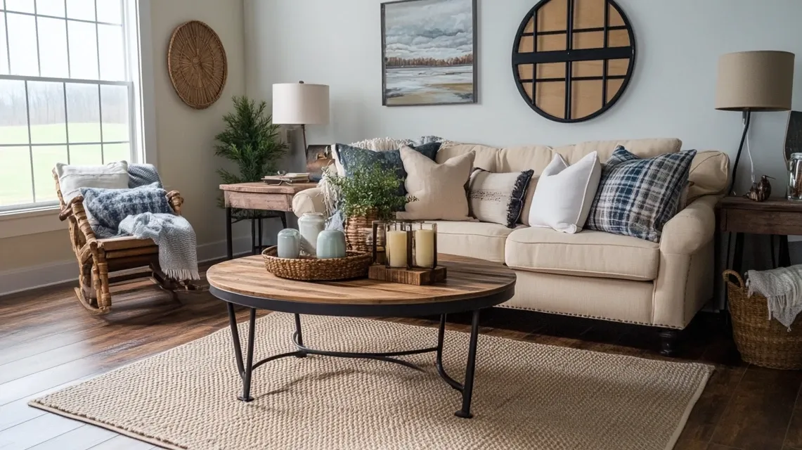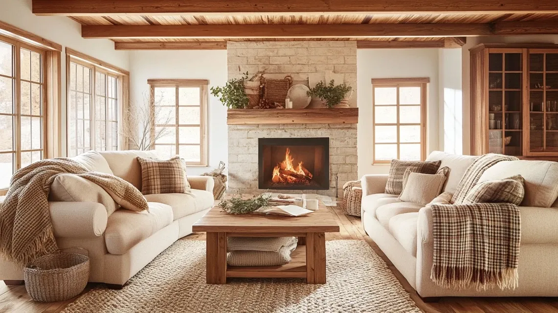 Throw in pillows with leaf or check patterns. Keep everything soft and warm. This kind of space feels like a real country home, simple, comfortable, and easy to enjoy.