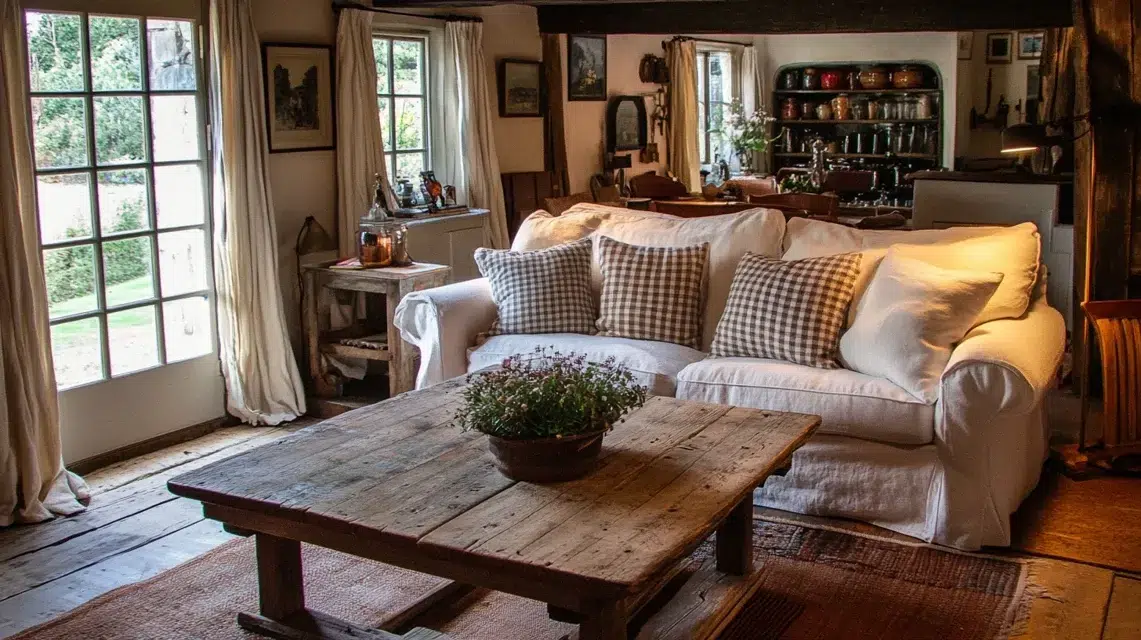 Ready to change your living room into a country cottage living room? Start small, perhaps with a vintage textile or rustic wooden accent, and watch how these touches instantly warm your space.