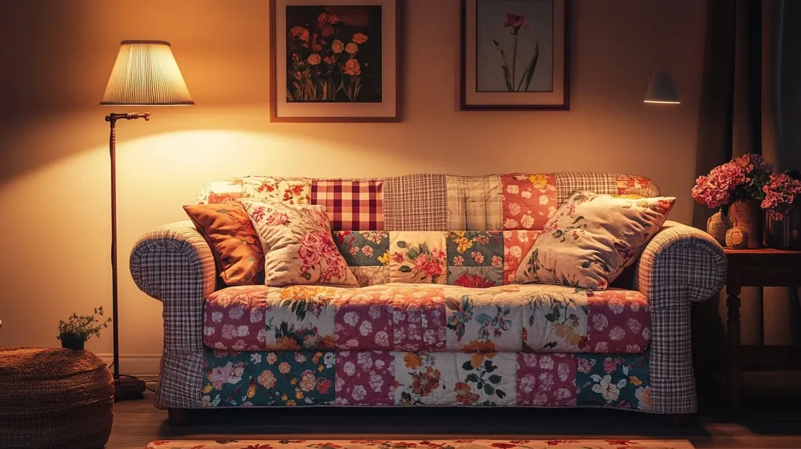 Add color and charm by placing patchwork quilts over your sofa or on the wall. Choose quilts with small floral or check patterns. They bring in history and warmth.