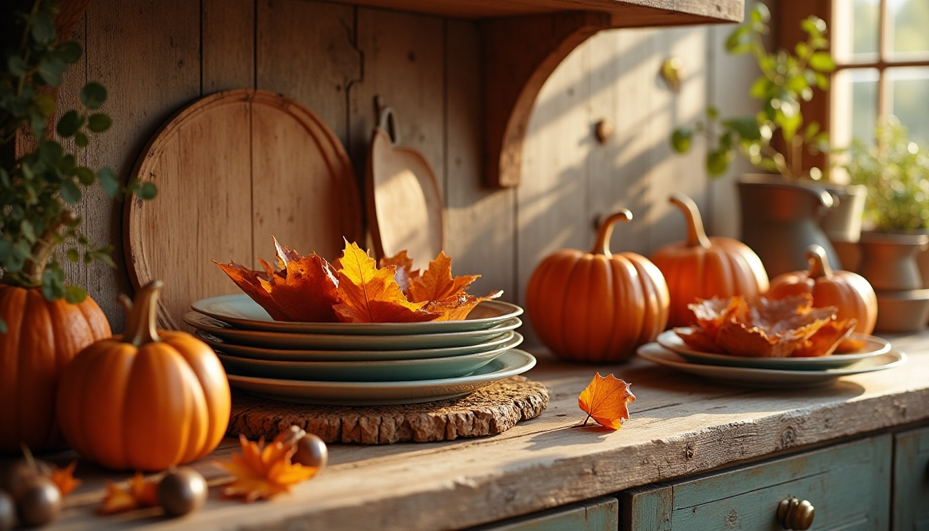 Bring in fall shapes through plates, bowls, or serving spoons shaped like leaves or acorns. These small touches add beauty without changing your whole setup. Check clearance shelves or secondhand shops for unique finds.