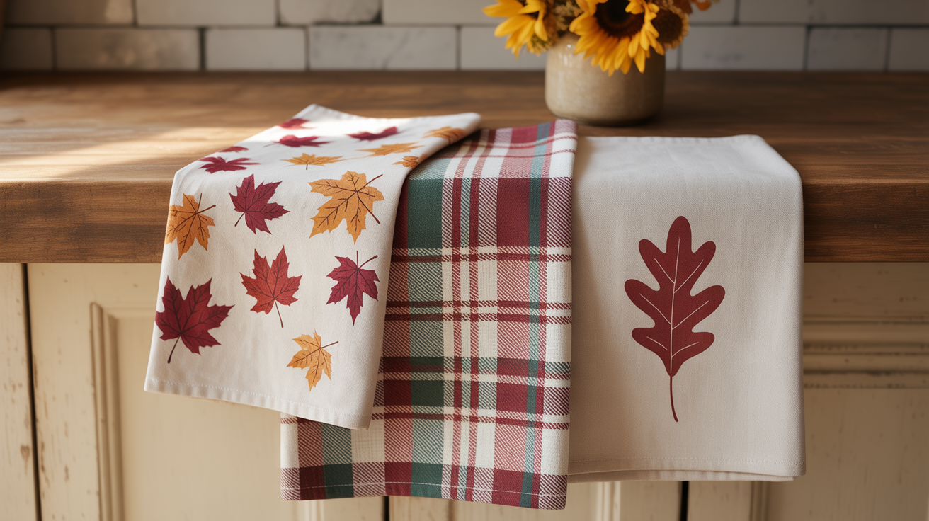 Swap your usual dish towels for ones with leaves, pumpkins, or plaid. It’s quick and cozy.