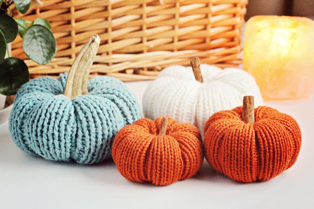 Tuck soft pumpkins into corners, bowls, or next to trays for texture. Choose knit, velvet, or plaid styles for variety. Make your own using scrap fabric and stuffing, or buy sets from Etsy.