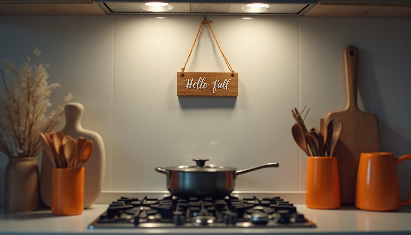 Place a small wooden or metal sign near your stove or backsplash for an instant seasonal touch.