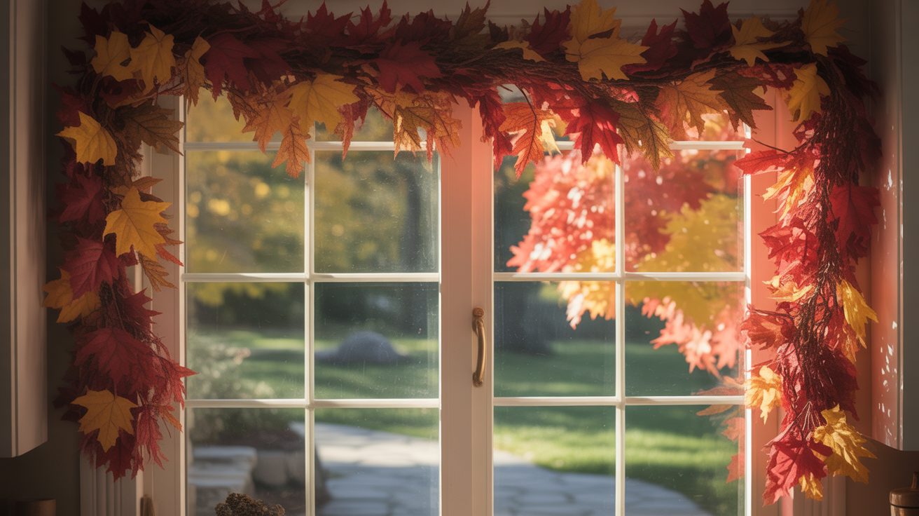 Drape a faux leaf garland across your kitchen window to bring fall colors into the room naturally.