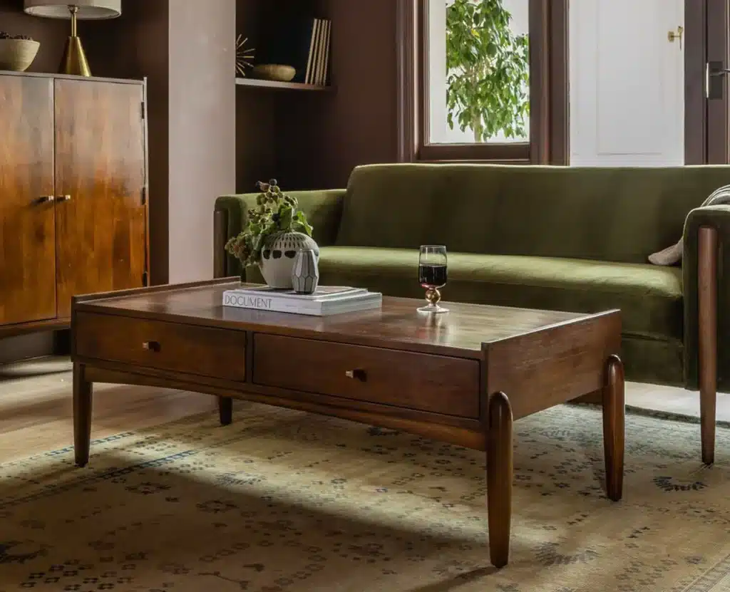 A coffee table is the focal point of your living room, bringing aesthetic appeal and functionality together. It can hold your coffee or snacks and display your indoor plants or decorative accents.