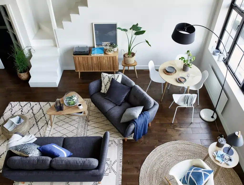 Effective zoning is crucial for dividing a room into multiple functional areas without walls. Area rugs can delineate spaces visually and add warmth and texture underfoot.