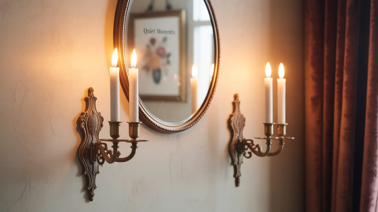 Use antique-looking candle holders or thrifted wall brackets to make vintage-style sconces. Add taper candles, glass votives, or battery-powered versions for safety.
