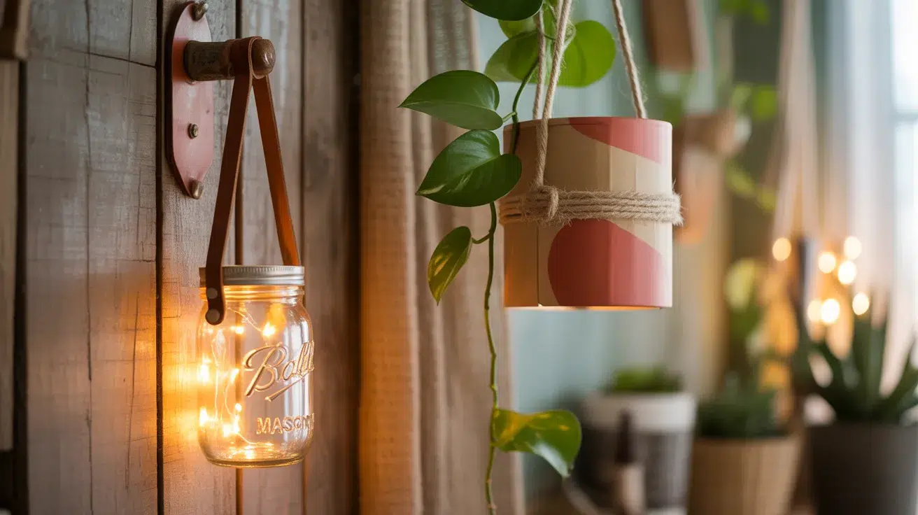 Turn old items like mason jars, wooden bowls, or cardboard mailing tubes into rustic wall sconces. Use twine or leather straps to hang them.