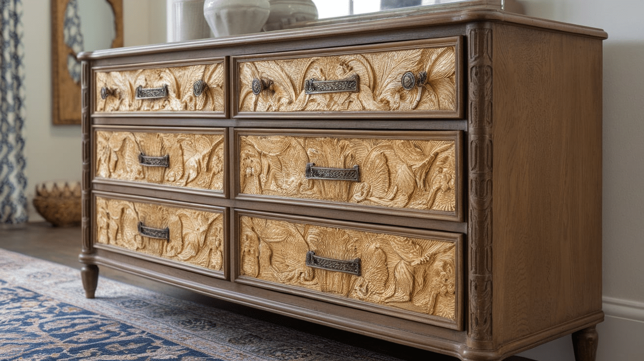 For my dresser project, I spent about $150 total on supplies (gold leaf, adhesive, sealer, and tools). This covered a medium-sized dresser with some leftover materials.