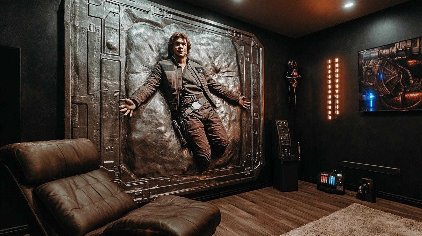 Install a striking replica of the famous Han Solo scene that stands out as a captivating centerpiece.