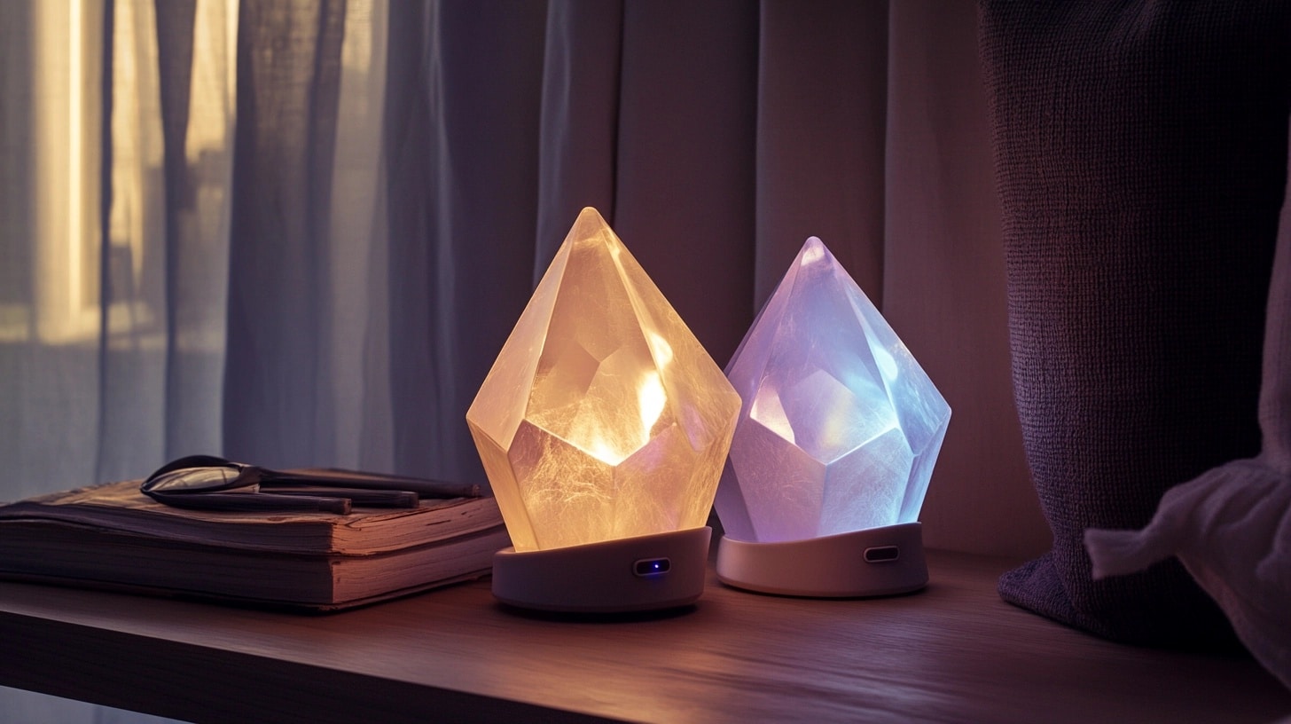 Create a geometric night light that resembles ancient wisdom storage devices.