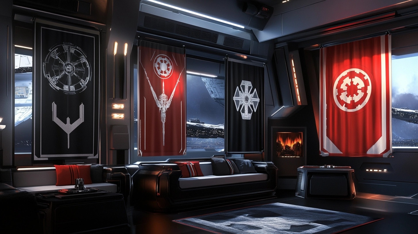 Transform your room into a Star Wars command center with strategically placed faction banners.