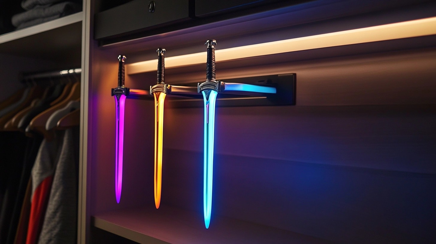 Replace standard closet hardware with illuminated sword-shaped handles.