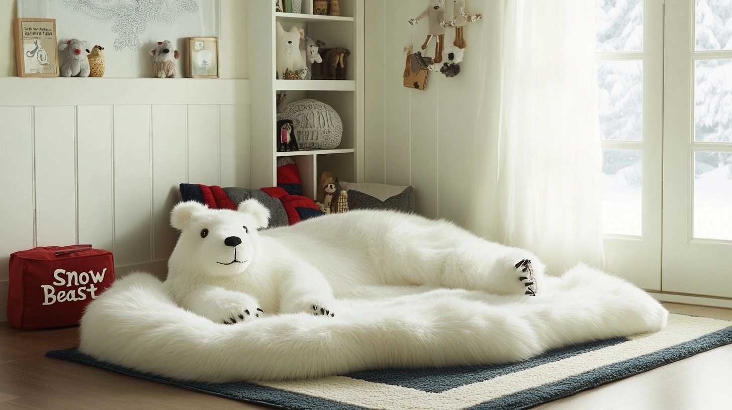 Add a playful touch with a white faux fur rug that brings comfort to your floor space.