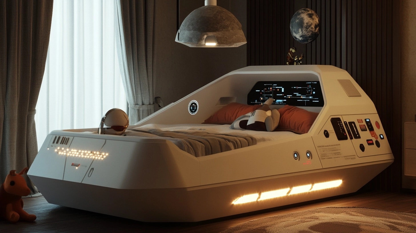 Turn bedtime into an interstellar experience with a custom-designed space vessel bed.