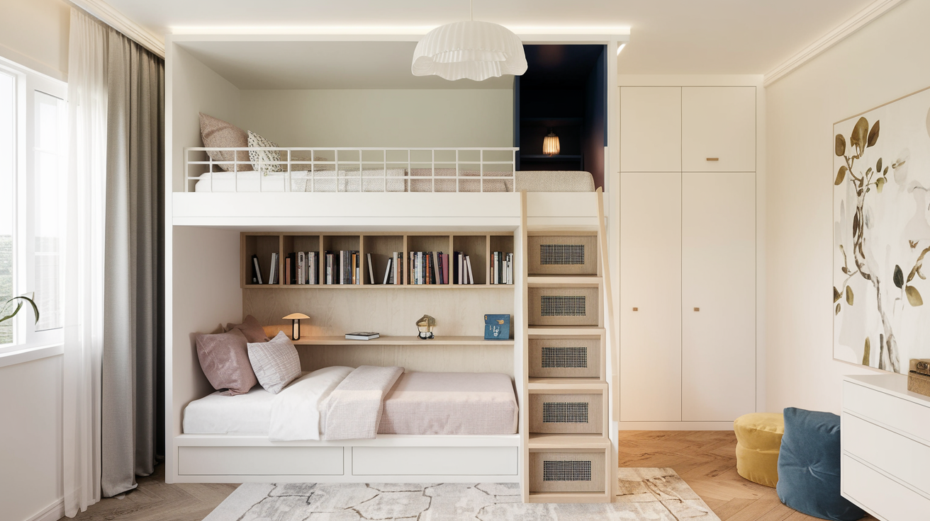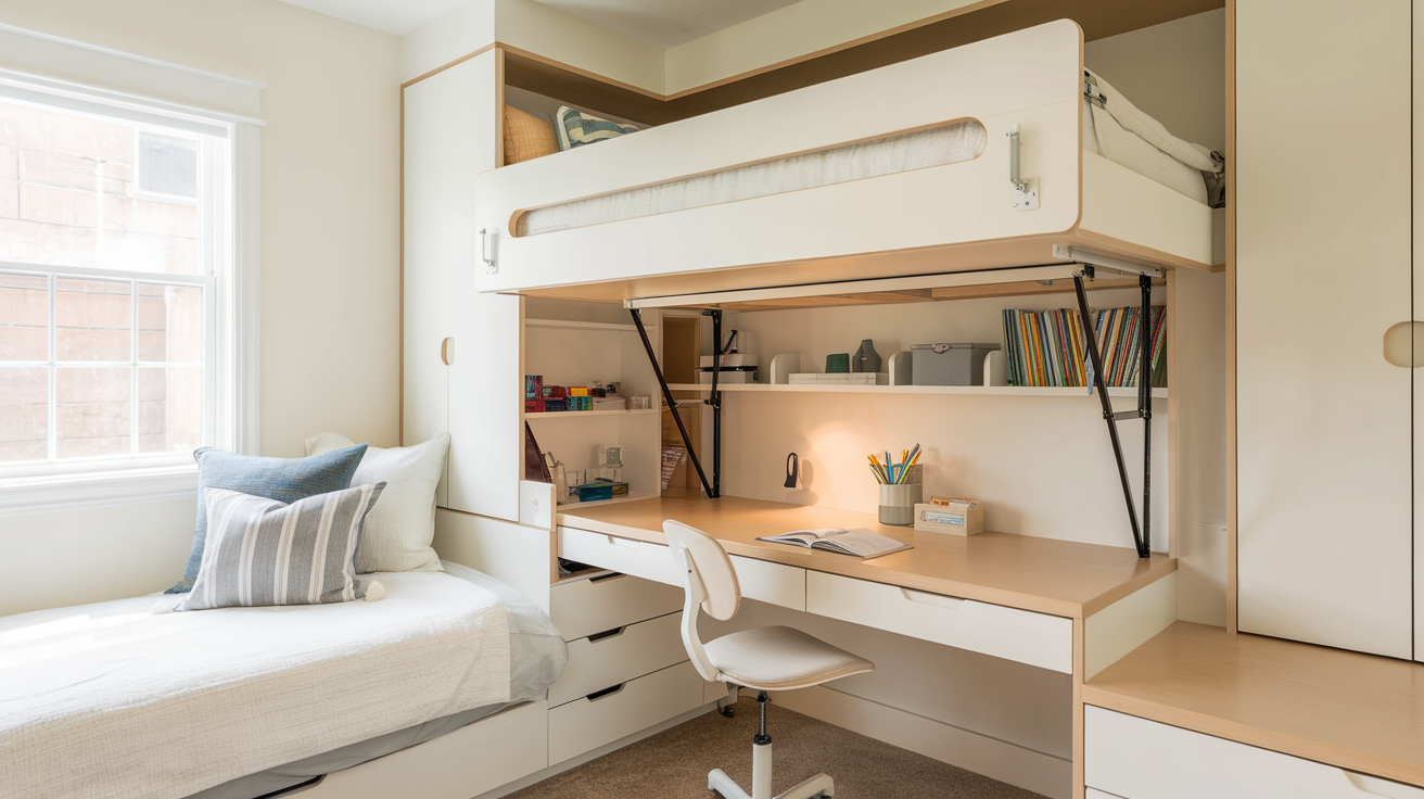 For small homes or apartments where every square foot matters, these space-smart designs help keep rooms open for play, study, and living.