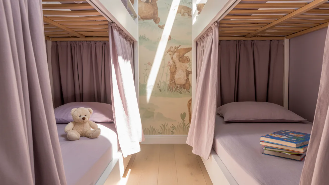 Privacy is important even in shared spaces. Adding curtains or sliding panels to each bunk creates mini “rooms” where kids can retreat with a book or toy.