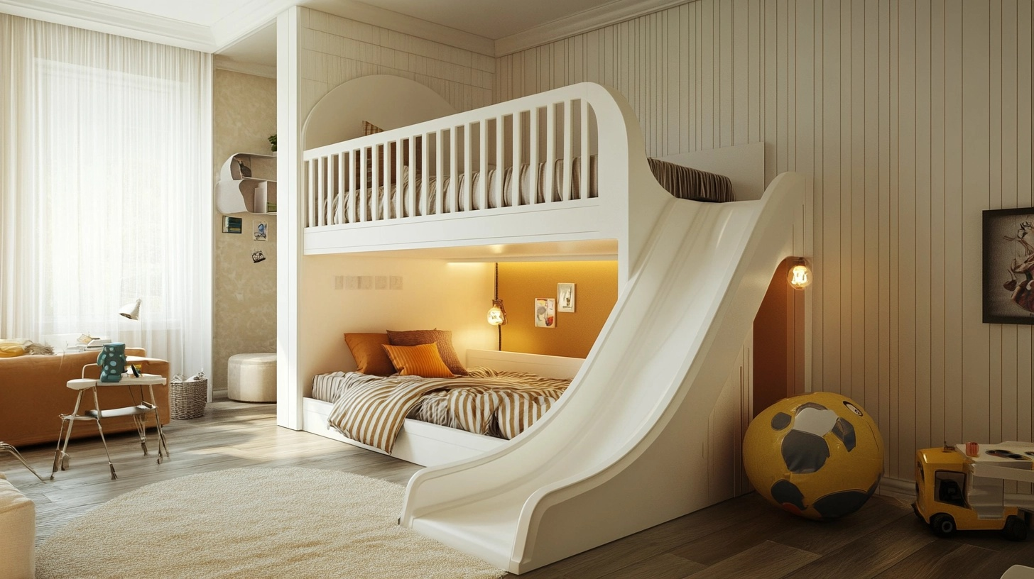 This playful addition makes bedtime more appealing and adds a touch of playground fun to the bedroom.