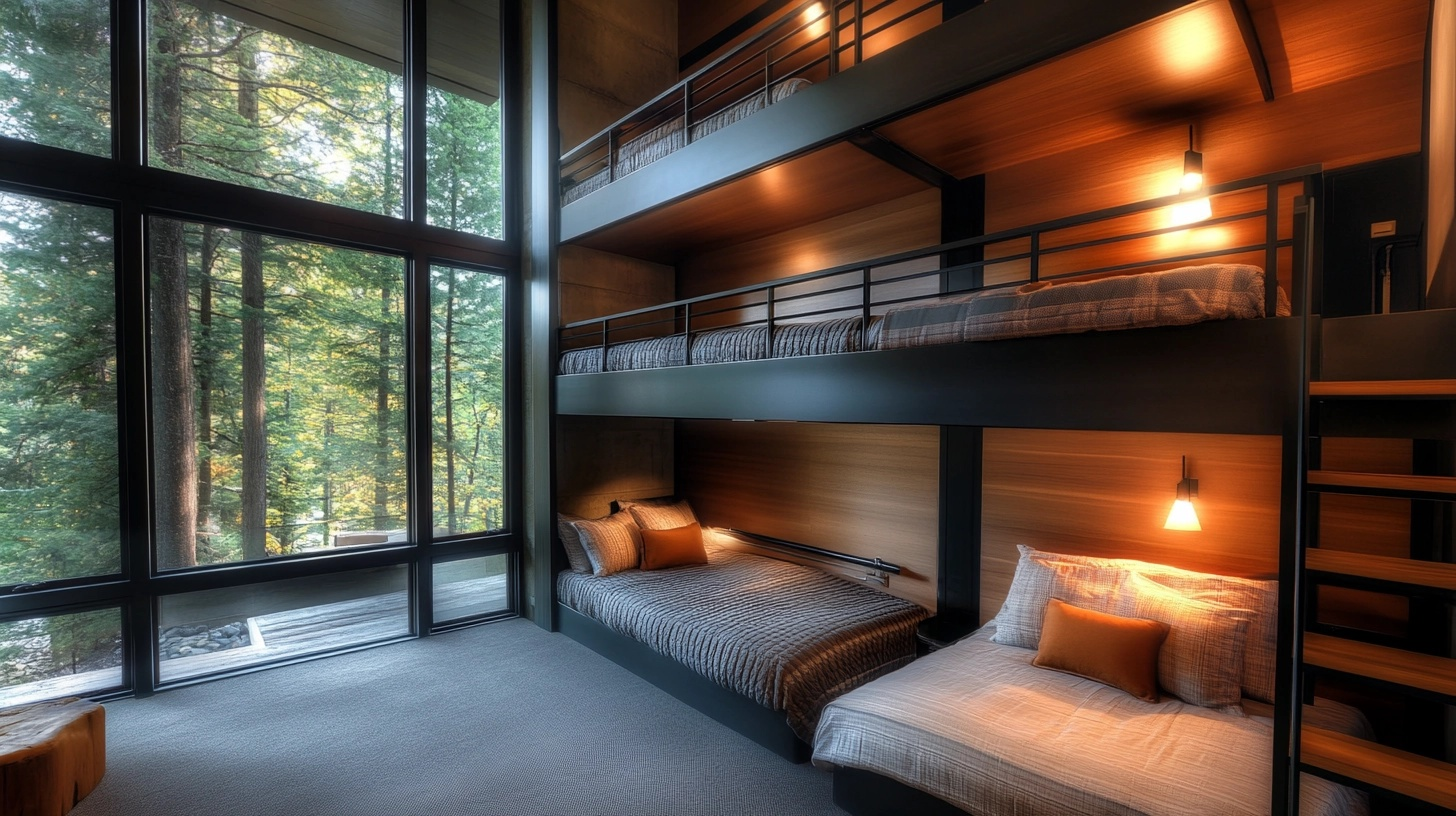For rooms with extra-high ceilings, consider a triple-stack design. These three-level bunks maximize sleeping capacity in minimal floor space, making them ideal for vacation homes or rooms shared by many children.