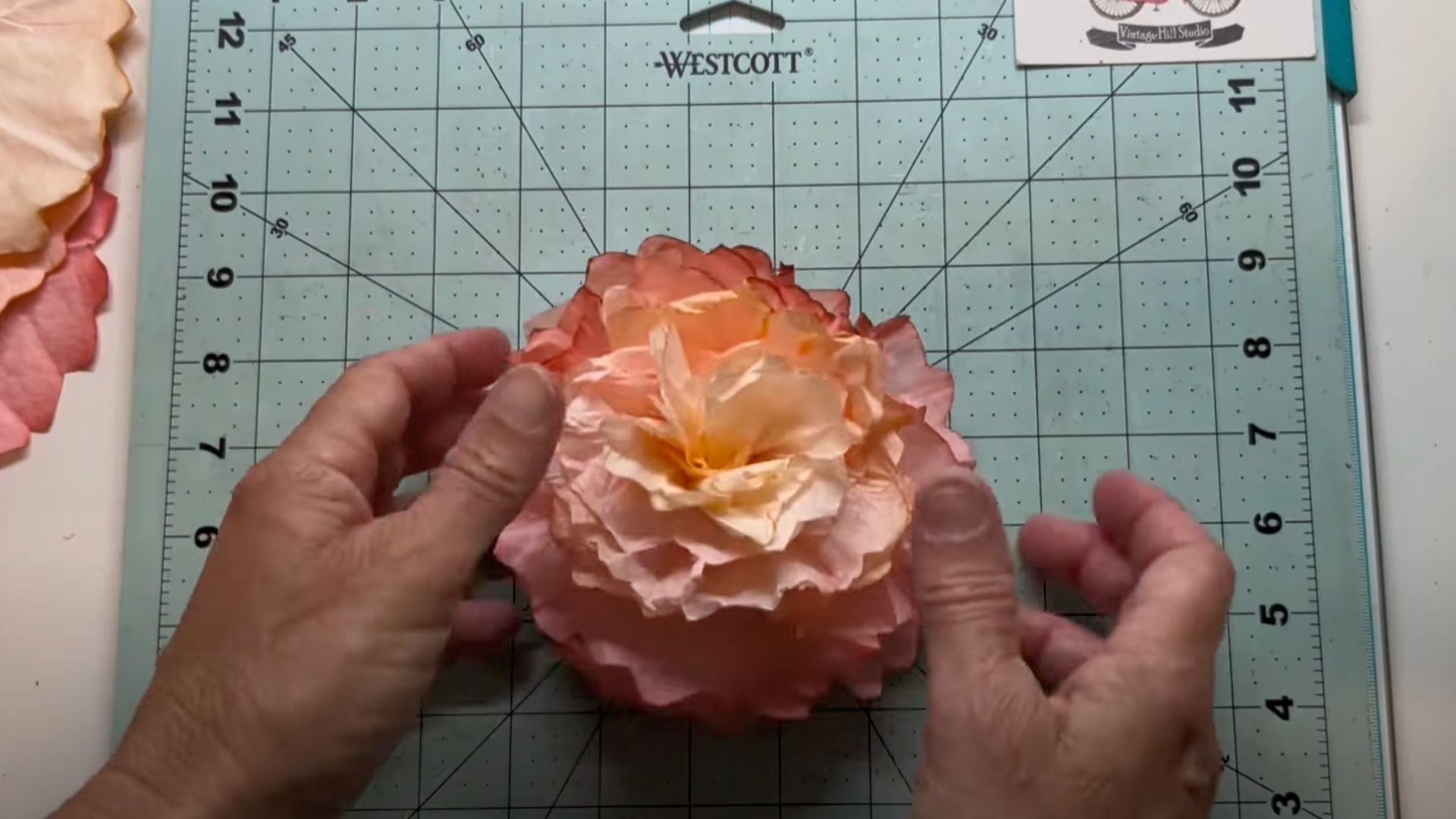 To make a rose, start by cutting soft, round petals. Stack 3 to 5 filters, each with petals cut a little differently, some tighter, some wider.