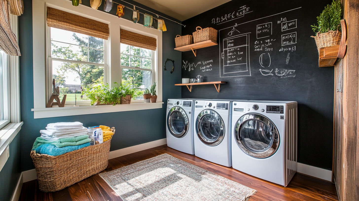Paint one wall with special chalk paint to make a writing space. Use it to track which loads need washing, list items that need special care, or write notes for family.