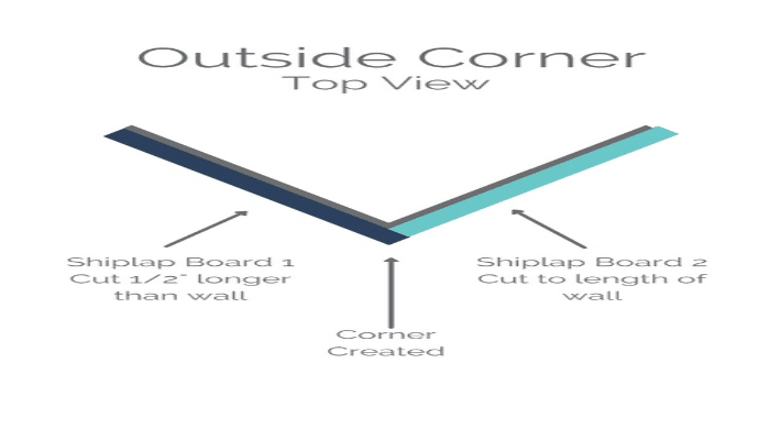 Tip 2: When shiplap the whole wall, be very cautious of the corners. The best way to cover the corner is to cut the shiplap boards for the left wall ½ inch shorter than the measured wall length. That way, it would overlap the boards put up on the back of the wall creating a clean corner.