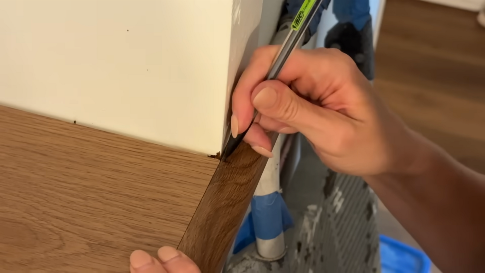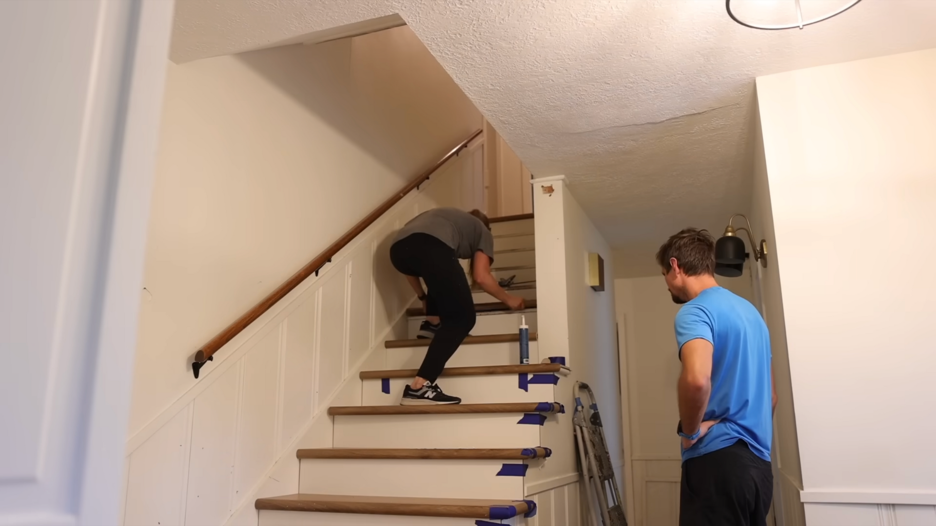 Painter’s tape helped secure the risers as they dried, creating a clean, seamless look that matched the home’s existing trim.