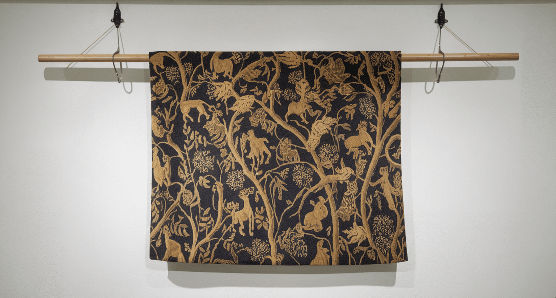 Simple dowel rods work well for lighter pieces. Heavier tapestries need secure wall anchors and proper mounting hardware.