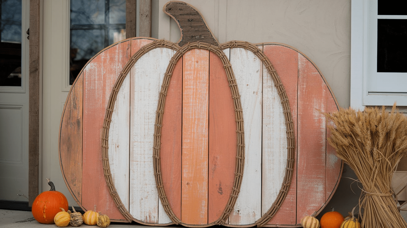 Wooden planks can be arranged together to create a pumpkin shape. This craft is great for making large porch decorations.