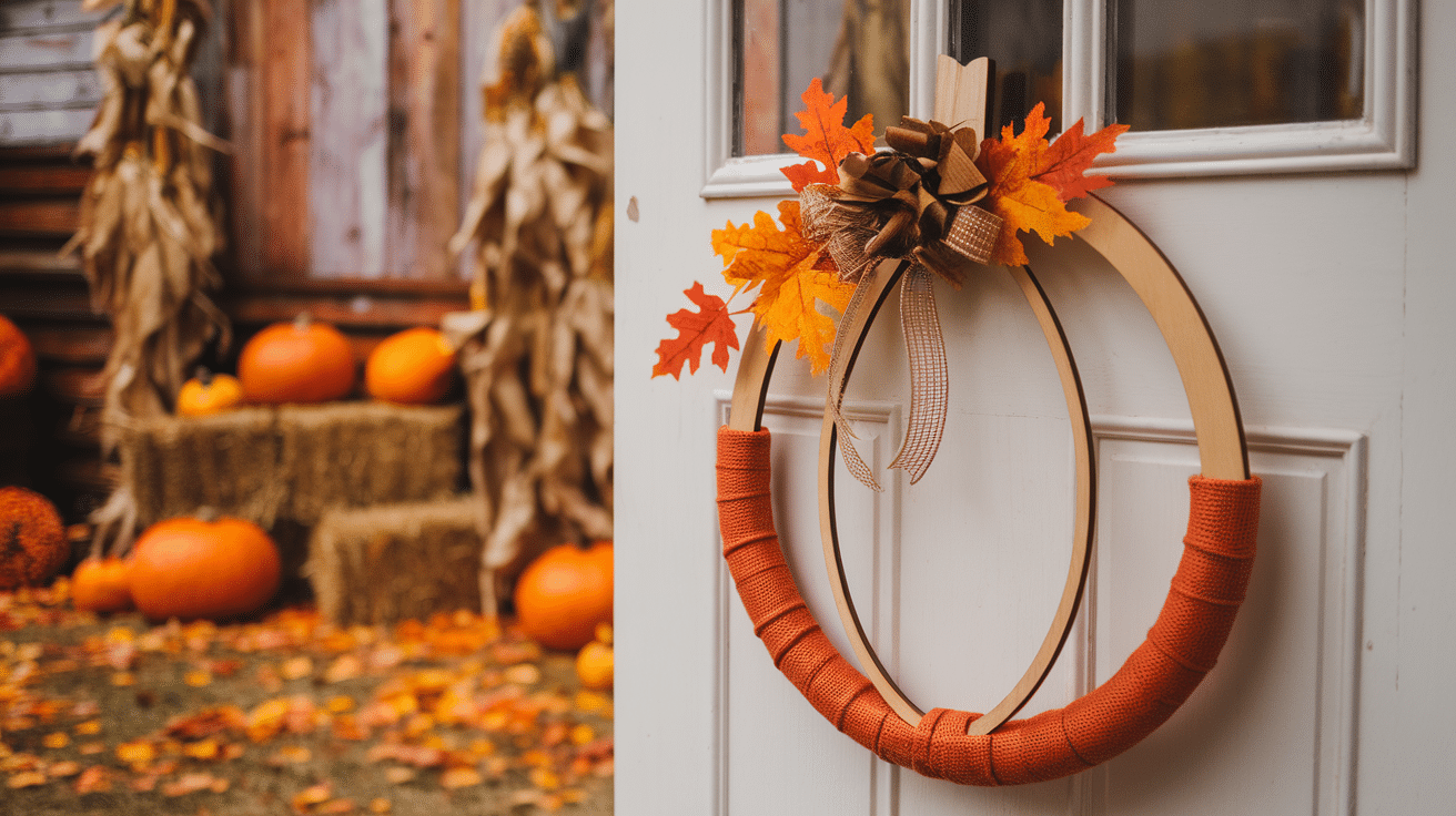 Instead of a traditional wreath, create a pumpkin-shaped wooden wreath for your front door.