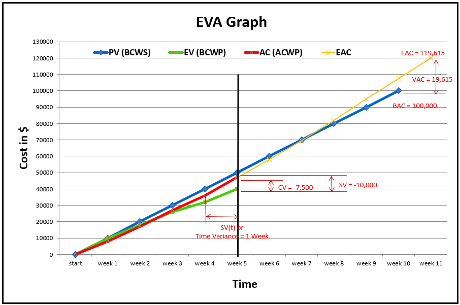 - EV or BCWP = No. of joints completed in 5 weeks x budgeted cost per joint