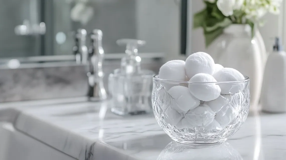 Store cotton rounds in a jar that looks like glass or has a shiny top. The jar adds a sparkle to your counter without being too loud.