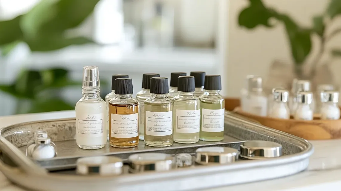 Keep tiny bottles of shampoo, lotion, or mouthwash in small clear jars. These are easy for guests to use. You can label them with stickers.