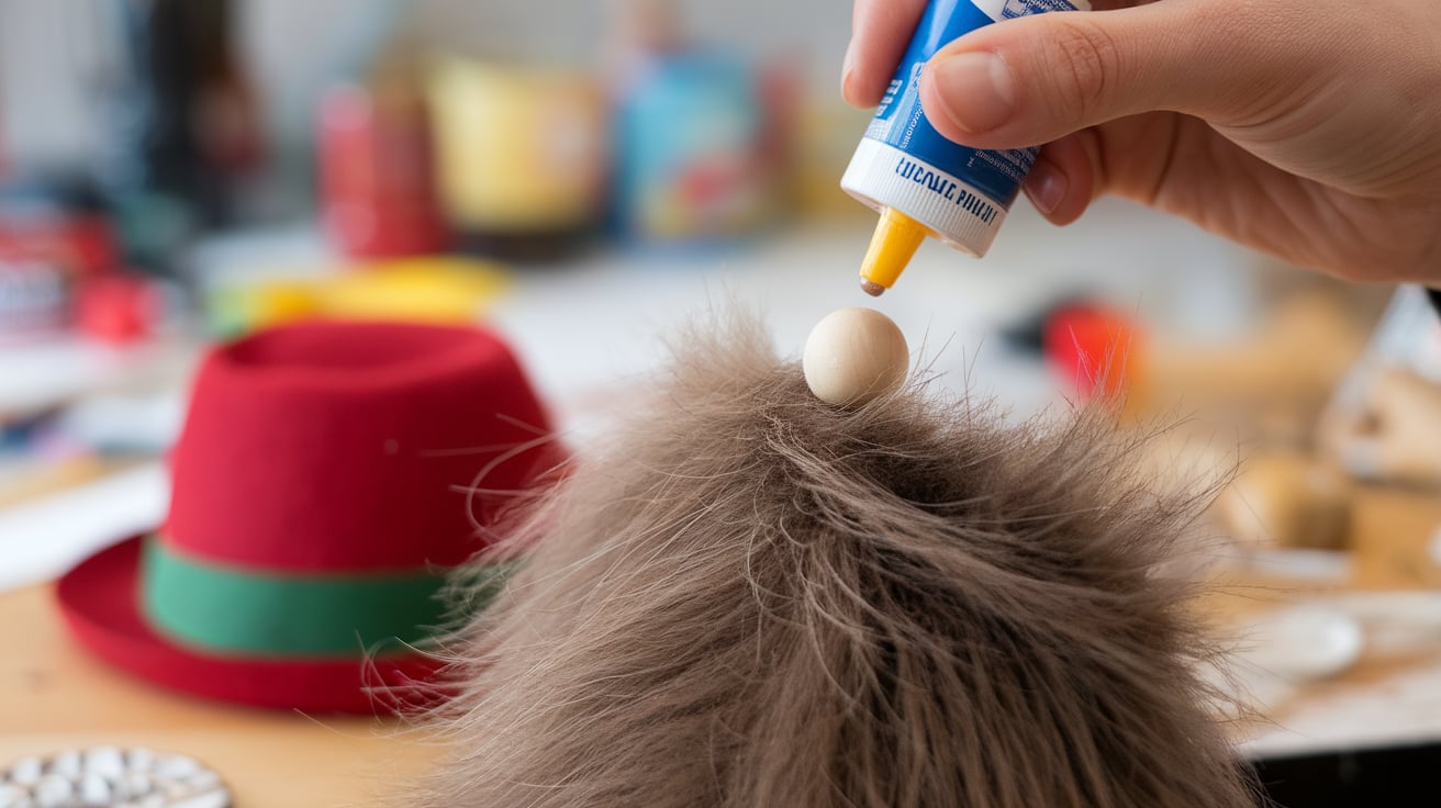 Secure the hat’s seam with hot glue or hand stitching. Test the fit on your gnome before the final attachment to ensure proper sizing.
