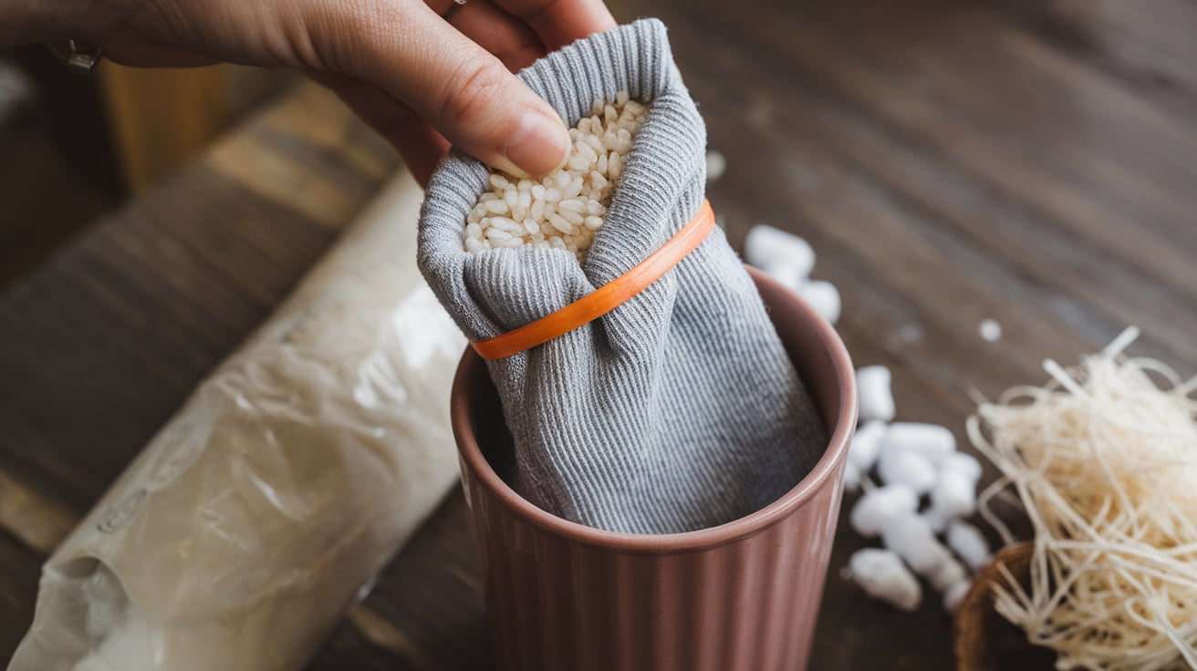 Once filled, secure the sock’s opening with a rubber band. Add a small amount of hot glue around the rubber band to ensure it stays closed and maintains its shape.