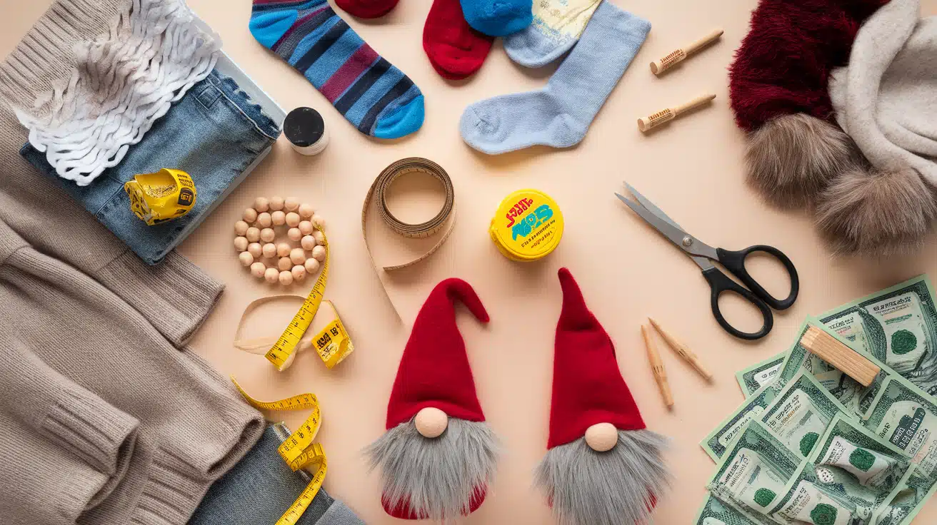 Starter supplies for gnome crafting cost between $15 and $30 for multiple projects. Most dollar stores offer affordable socks, basic felt, and essential tools.