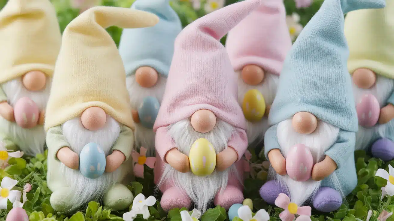 Spring brings opportunities for pastel-colored gnomes with light, airy designs. Easter-themed versions often sport soft yellow, pink, or blue hats with coordinating decorations.