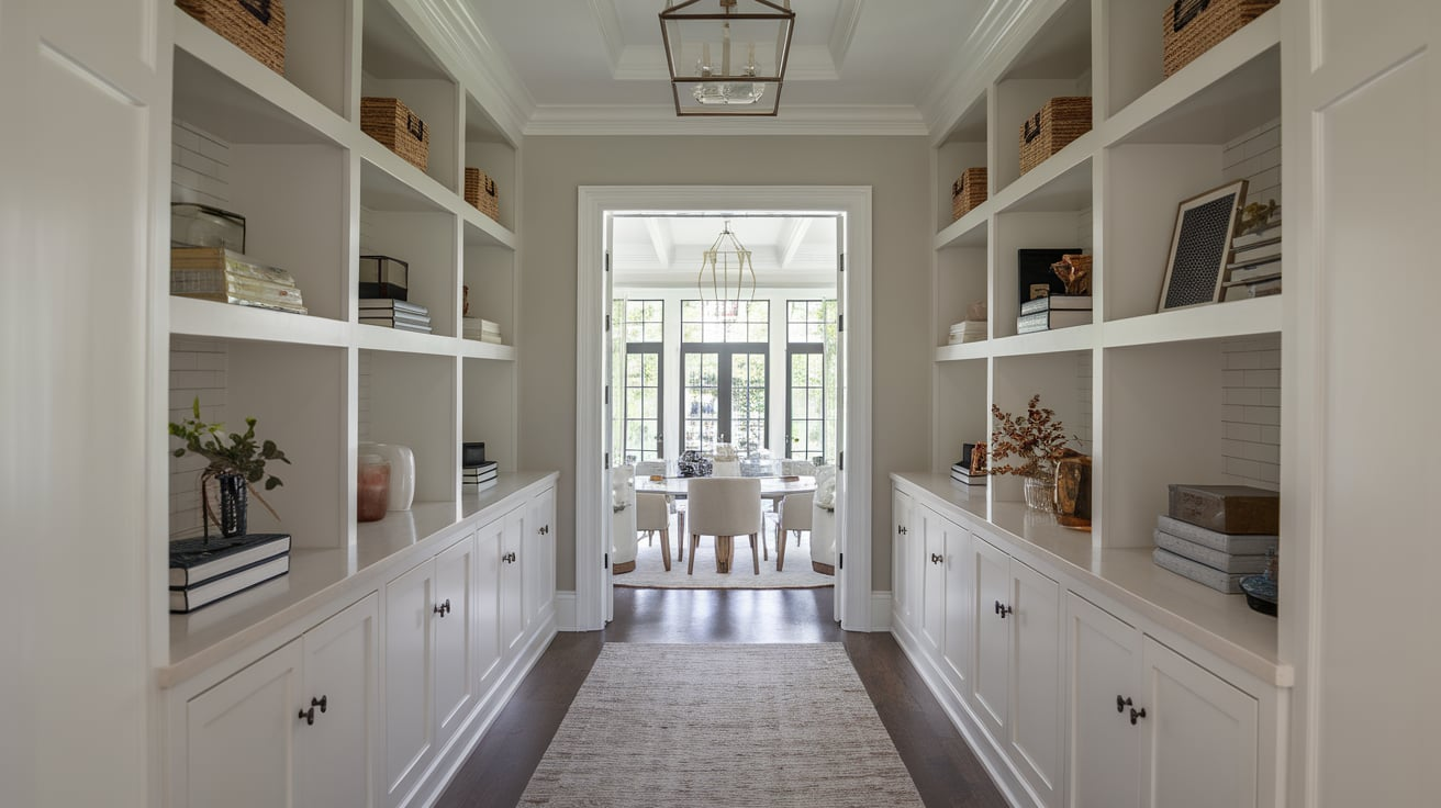 Built-in cabinets or shelves are a great way to utilize the space at the end of the hallway for additional storage. These custom pieces can be designed to fit the space perfectly, offering a seamless look.