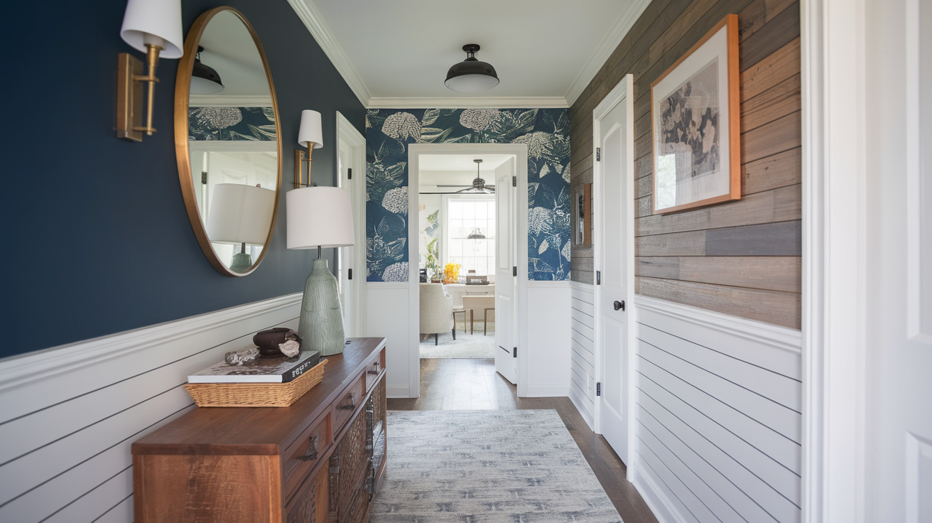 If you prefer a natural look, consider installing reclaimed wood or shiplap to create a rustic or coastal vibe. These textures help create a welcoming, warm atmosphere that draws attention to the end of the hallway.